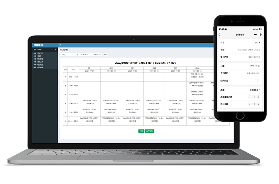 陪读星球帮我原来纸质的计划全部电子化了,积分也可以实时同步,奖励也一目了然。平时都是和和娃一起定好本周任务然后很顺利执行下去了!